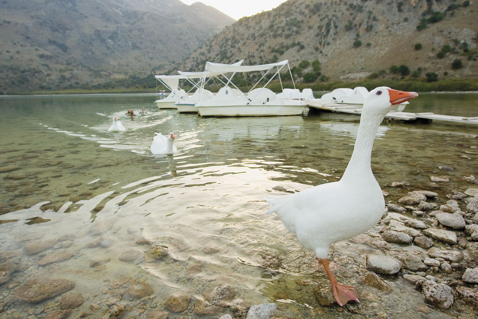From there, head south, cross the bridge on the national road, and you will soon arrive in the village of Kournas. We recommend stopping there. Walk down to the lake, the only natural lake in Crete, which is well worth a visit. There, you can rent pedal boats. If you want to enjoy the enchanting landscape from above, take a paragliding flight from the paragliding track in the area.