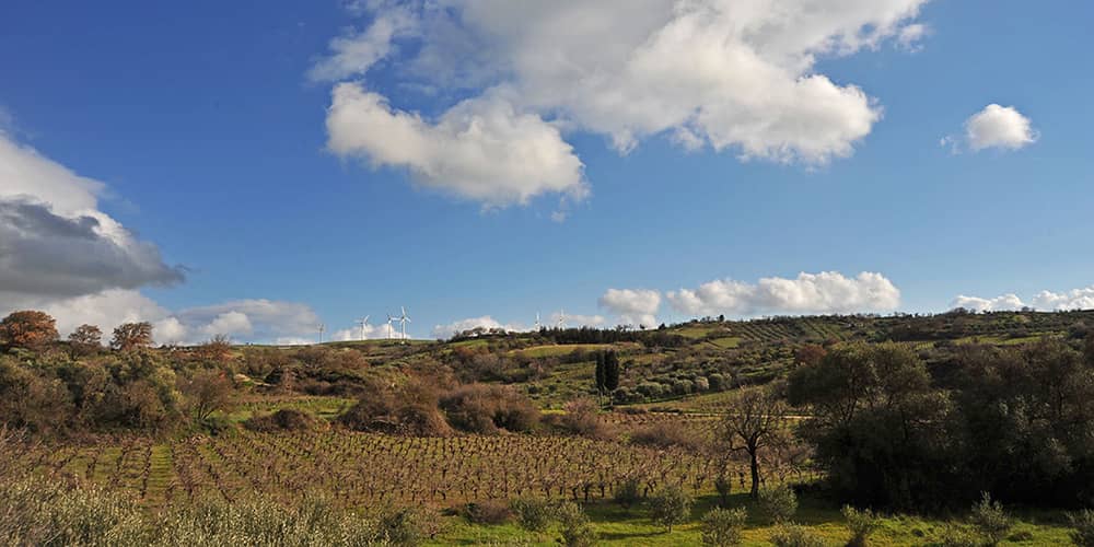 Στα νότια του χωριού ανοίγεται ένα λοφώδες τοπίο με απέραντους αμπελώνες ανοικτό στα νότια της ενδοχώρας του νομού.